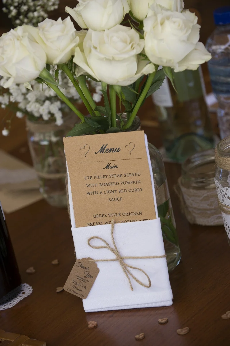 The style I envisioned for my day was rustic and bohemian. We picked the beach for the wedding location as the beach is where we first met. We both love the beach. We went with rustic and boho as I think it complements the beach and is nice and natural. We wanted to have a really romantic feel with all the candles; we chose whites roses and baby's breath as we felt that matched the theme really nice. Our colour palette was just nice natural colours.